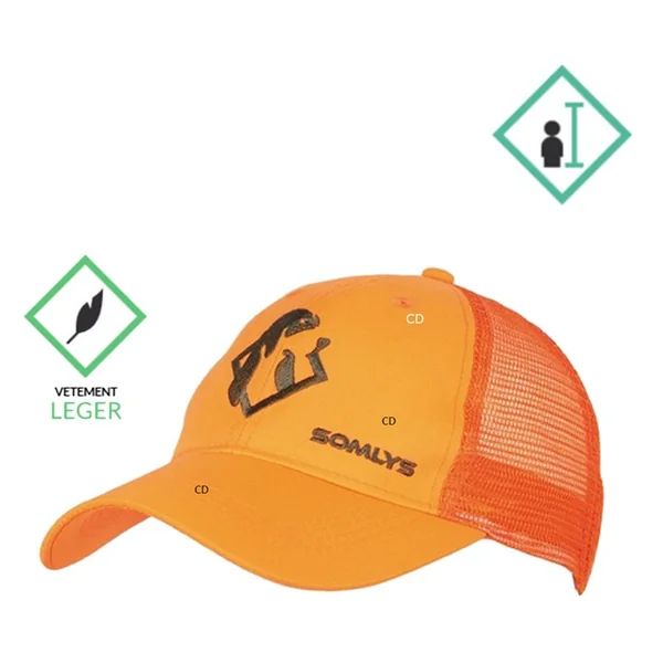 Casquette enfant, coloris orange fluo, avec maille sur l’arrière, de marque Somlys.