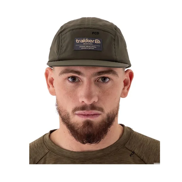 La casquette 5 Panel Vert, de marque Trakker, est un modèle unique en taille, conçu en polyester résistant.