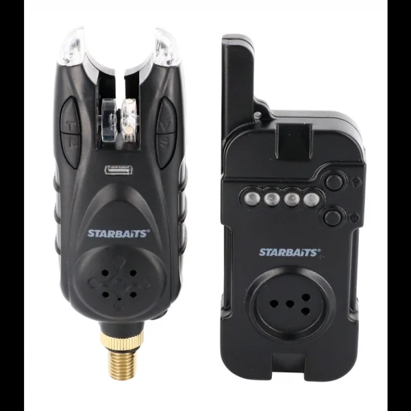 Centrale et Détecteurs Starbaits Bite Indic Set – Centrale + 3 détecteurs Le STB BITE INDICATOR EMET./REC. Est un détecteur de touche disposant de toutes les fonctions nécessaires pour répondre à toutes les conditions (courant, vent, pêche en bateau, pluie…). 100 % étanche, d’un design épuré et d’un poids léger, il sera de toutes les pêches: rapides ou longues. Son alimentation par pile de 9V lui confère une autonomie accrue. Les réglages très faciles et intuitifs se font à l’aide des 4 boutons poussoirs simple d’accès présents sur le devant (T/L/V/S). Il dispose en plus du STB BITE INDICATOR d’un émetteur. Il est ainsi couplé avec une centrale tout aussi pratique d’utilisation et de facilité de réglages que le détecteur. Un détecteur destiné aux plus exigeants mais aussi aux débutants. Caractéristiques détecteur: – Technologie digitale – 100 % étanche – 7 niveaux sonores dont un muet – 6 niveaux de sensibilité – 6 tonalités différentes – Diodes haute visibilité – Possibilité de laisser la led centrale allumée pour la nuit – 2 diodes au niveau des oreilles, une pour la détection de la touche l’autre pour la temporisation – Détection par roulette aimantée disposant d’un joint de contact – Alimentation par pile de 9V – Compartiment pile simple d’accès – Pas de vis avec bague d’ajustement – Prise jack pour accessoires lumineux – Réglages par simple pression des boutons – 4 boutons (S sensibilité, L led, V volume/allumage et T tonalité) – Réglages très intuitifs et faciles Caractéristiques de la centrale: – Technologie digitale – Radio transmission d’une portée de 200 m en terrain dégagé – 4 niveaux de volume – Bouton d’allumage – 4 diodes (1 par canne) – Temporisation de la diode de 20 s – Retransmission instantanée – Alimentation accrue par 3 pile AAA Avis Centrale et Détecteurs Starbaits Bite Indic Set – Centrale + 3 détecteurs Écrivez votre avis