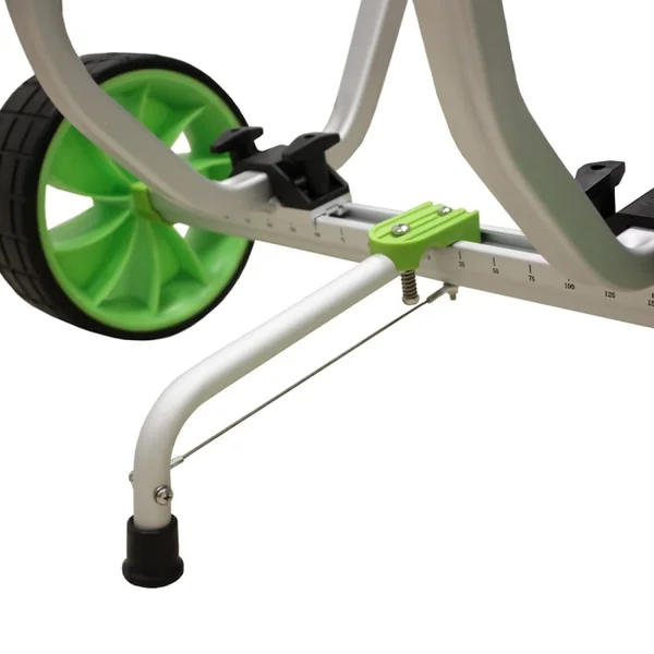 Il est doté d’une béquille rabattable, permettant de maintenir le chariot droit lors du chargement et à l’arrêt, évitant ainsi que le kayak ne touche le sol.