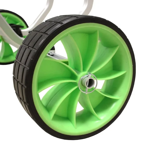 Ces roues, mesurant un diamètre de 26, cm, permettent de naviguer aisément sur des terrains variés, tels que le sable, les graviers et les chemins accidentés.
