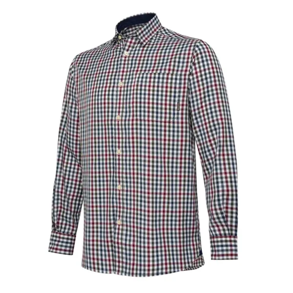 Composition : 100% polyester 130 g/m2 . Col boutonné caché. Fermeture à boutons. Poche poitrine plaquée. Drapeau avec logo Beretta sur la poche. Coupe: droite. Coloris : à carreaux vert/bordeaux/bleu marine. Tailles : du S au 4XL.