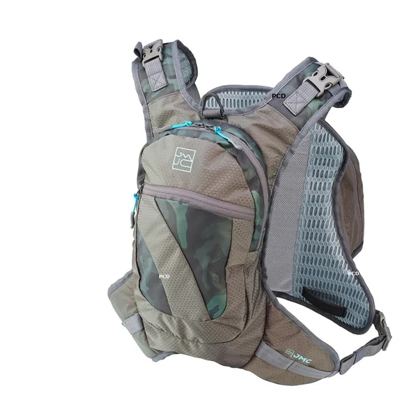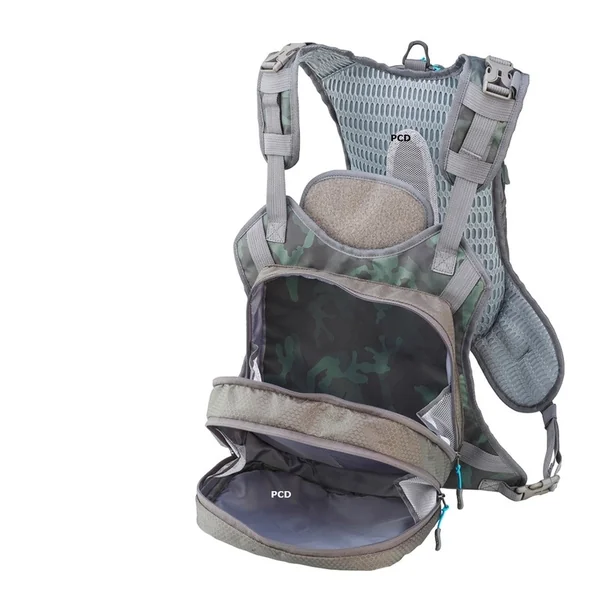 On retrouve sur la partie avant et sur le sac à dos de nombreux suspenseurs, une large zone de patch velcro directement dérivée de notre célèbre chest-pack Compétition ainsi qu’un anneau D-ring dorsal pour accrocher votre épuisette.