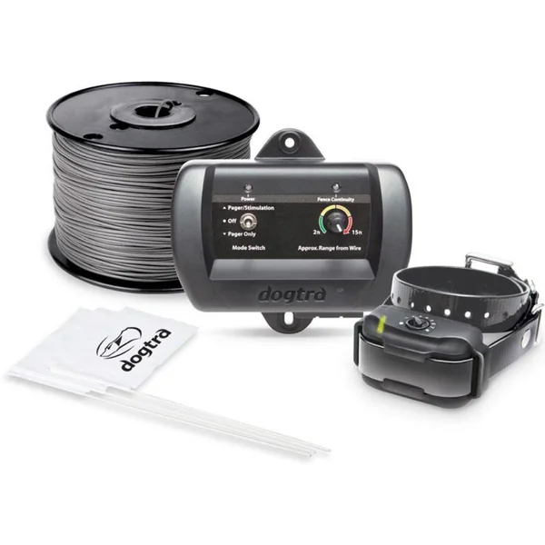 La clôture anti-fugue Dogtra E-Fence 3500 permet à votre chien de s’amuser librement et en sécurité dans une zone préalablement définie avec le fil d’antenne. Pour améliorer l’apprentissage du chien, la clôture possède un mode de vibration qui prévient le chien avant l’impulsion électrostatique. Pour la sécurité du chien, la stimulation est limitée à 8 secondes. Le signal de longue portée permet de clôturer jusqu’à 16 hectares, ce qui rend la clôture efficace.