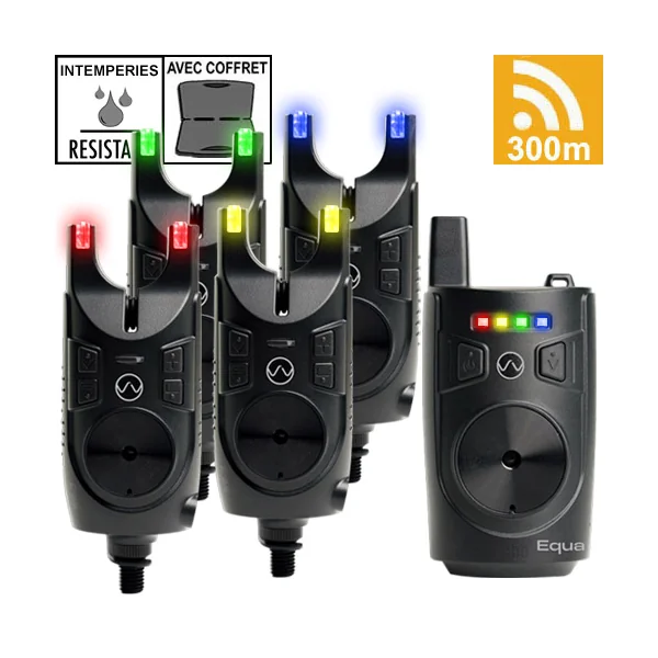 Détecteurs avec centrale pour une détection fiable et performante. Le coffret EQUA est un ensemble de détecteurs de touches avec centrale conçu pour offrir aux pêcheurs à la carpe une fiabilité et une précision optimales. Avec une portée de 300 mètres, il garantit une transmission sans faille, même dans des conditions difficiles.