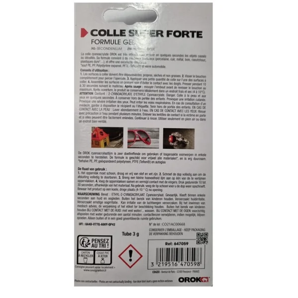 Colle Glue extra forte Orok gel 3gr Colle cyano séchage intantanée répare en quelques secondes .