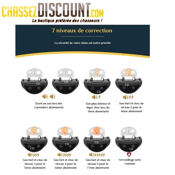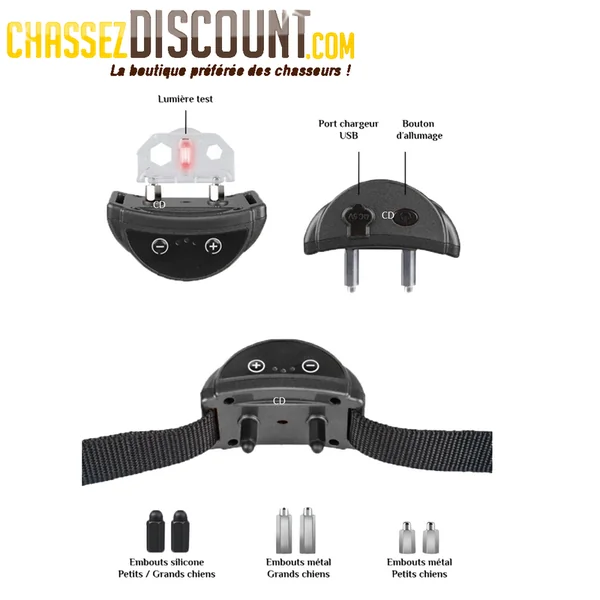 COLLIER ANTI-ABOIEMENT RECHARGEABLE DOGGY STYLE :Caractéristiques :-Le Collier DoggyStyle a été conçu pour arrêter les aboiements de votre chien de façon systématique et sans aucun danger.-Celui-ci offre 5 niveaux de stimulation qui se règlent automatiquement.-L’arrêt automatique de sécurité élimine le risque de correction excessive et abusive.*Caractéristiques techniques :-Réglage automatique du collier sur 5 niveaux.-Boitier à batterie rechargeable, terminé les piles !-Collier réglable pour petits, moyens et grand chiens.-Sondes contact pour tous types de chiens.*Sensibilité :-La sensibilité peut être ajustée manuellement selon les aboiements de votre chien.-Le bouton « +/- » vous servira à la régler.-La sensibilité de base est 3, lors de chaque pression un son retentira augmentant la sensibilité jusqu’à 5 et la ramenant automatiquement à 1.*Comment ça marche ?-Lorsque votre chien aboie le collier retentira 2 secondes.-Dans les 30 secondes suivantes, si celui-ci aboie de nouveau, le collier sonnera 30 secondes.(les 2ères fois sont uniquement préventives).-Dans les 30 secondes si le chien aboie encore, un son intense de 5 secondes et un très léger choc encourageront le chien à ce souvenir de cette légère correction pour ne plus aboyer.-Le même schéma se produira 7 fois de façon plus intense à chaque fois.-Ne vous inquiétez pas, le choc ne fera pas grand mal à votre chien !-La sécurité automatique se met en place au 8ème niveaux afin que la punition ne soit pas excessive et abusive.*Contenu :-Un boitier anti-aboiement rechargeable.-Un collier en nylon pour toutes tailles de chien.-4 sondes de contact (pour petits / moyens et grands chiens).-1 test de lumière.-1 câble de charge USB.-1 notice d’utilisation.