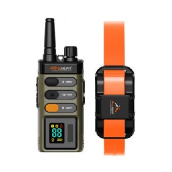 Compact et léger, le collier de dressage ProHunt 1500 m est à la fois simple et intuitif. Il permet de d’éduquer jusqu’à 2 chiens (collier additionnel vendu séparément). La molette supérieure règle le ou les colliers selon 99 niveaux de stimulation et contrôle les fonctions auxiliaires. Quatre boutons distincts gèrent la stimulation, la vibration, la tonalité et les témoins lumineux. L’éclairage LED à distance sur le collier aide à repérer ses chiens dans l’obscurité. L’émetteur comme les colliers sont conçus pour résister à un usage intensif, notamment lors de la chasse. Ce collier de dressage ProHunt et sa télécommande sont équipés de batteries lithium-ion durables et rechargeables. Un indicateur de charge situé sur l’émetteur informe quand il est temps de recharger la batterie. Pour vérifier la bonne mise en marche du collier, celui-ci vibre une fois à l’allumage et deux fois à l’extinction.