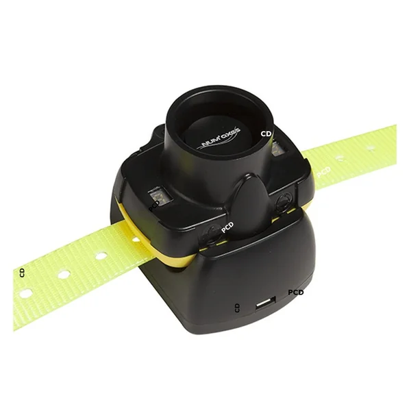-1 collier de repérage Canibeep 5 équipé d’une sangle jaune fluo.