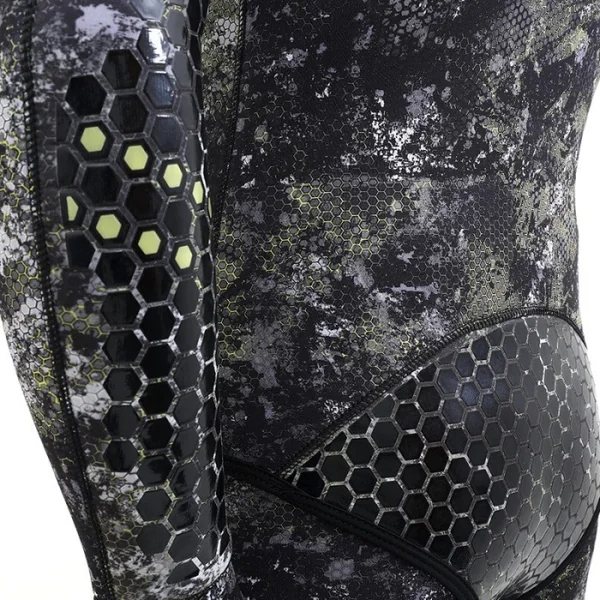 Fabriquée avec le néoprène de qualité supérieure Yamamoto 039 et la fibre spandex 019, la combinaison offre un confort exceptionnel grâce à son motif de camouflage tactique 4ways stretch extérieur et sa doublure fendue intérieure.