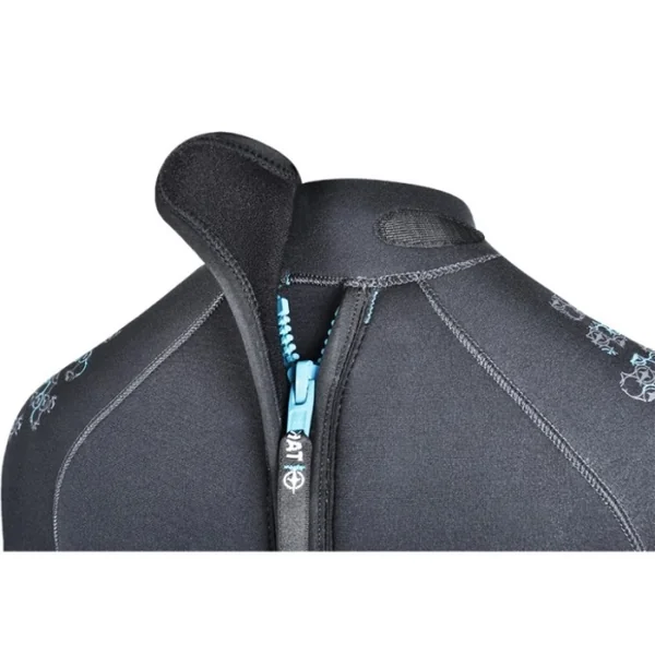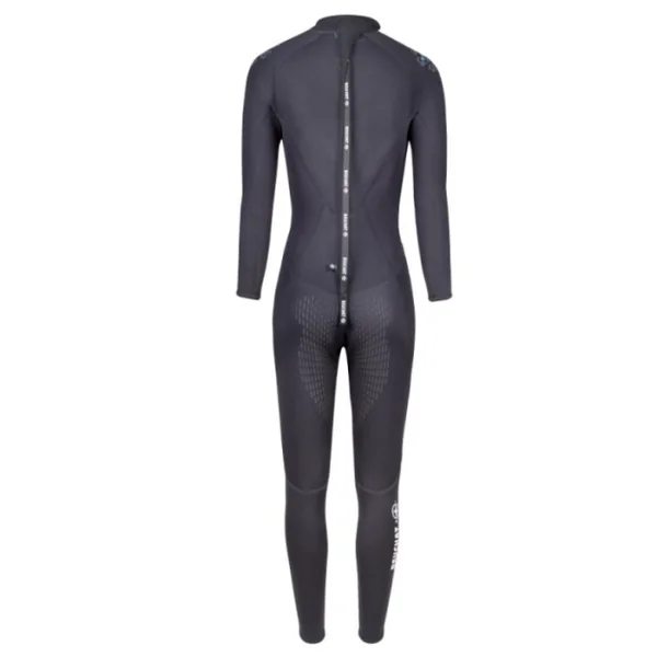 La version femme, en noir avec des zips bleu clair, offre une esthétique élégante pour vos explorations sous-marines.