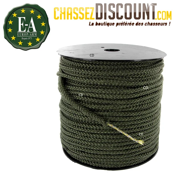 CORDEAU TRESSE 100M VERT AVEC ME DE 4MM :Caractéristiques :-Cordeau spécial appelants, discret et ultra résistant.-Cordeau vert olive se confondant bien avec le milieu naturel.-La corde est tressée autour d’une âme qui permet de la renforcer et la solidifier afin d’être employée pour de multiples usages.-Fabriquée en polypropylène, une matière qui a la particularité d’être très résistante à l’abrasion.-Bobine de 100m.-Diamètre 4mm.