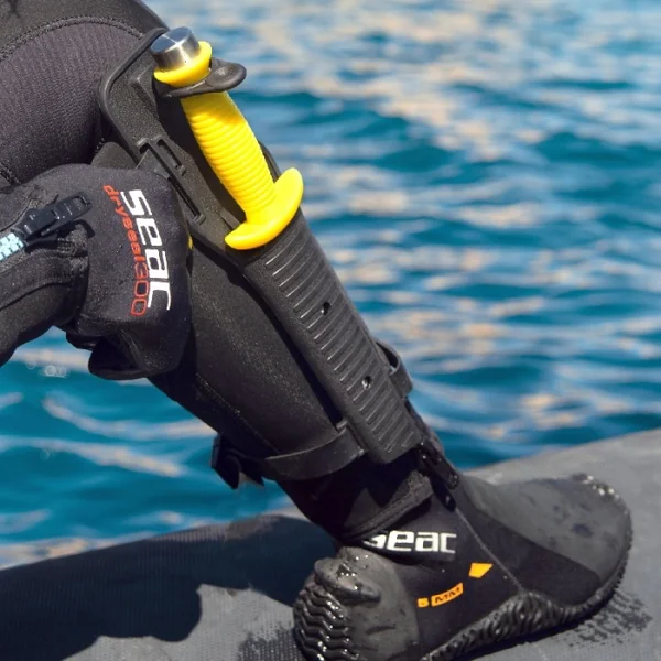 – Un cylindre d’acier à la base de la poignée permet d’attirer l’attention des autres plongeurs en le frappant sur un rocher Avis Couteau Seac sub Cosmos Écrivez votre avis