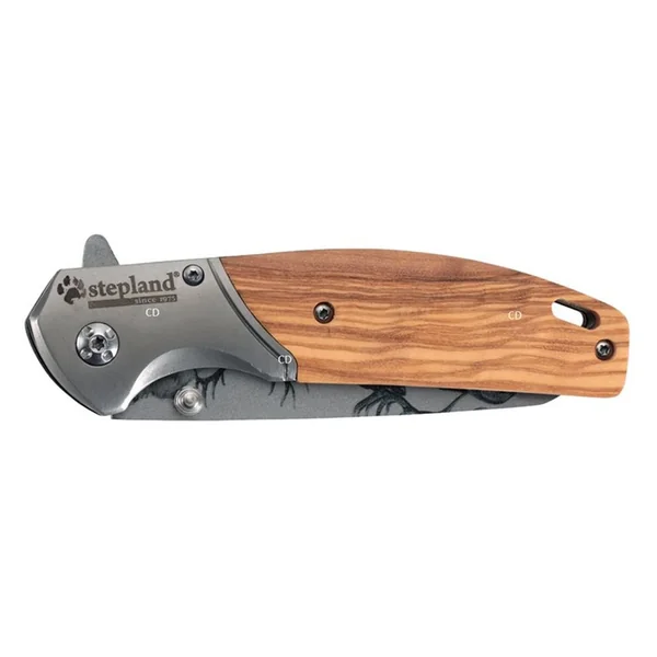 Couteau pliant, avec gravure Cerf sur la lame, de marque Stepland.