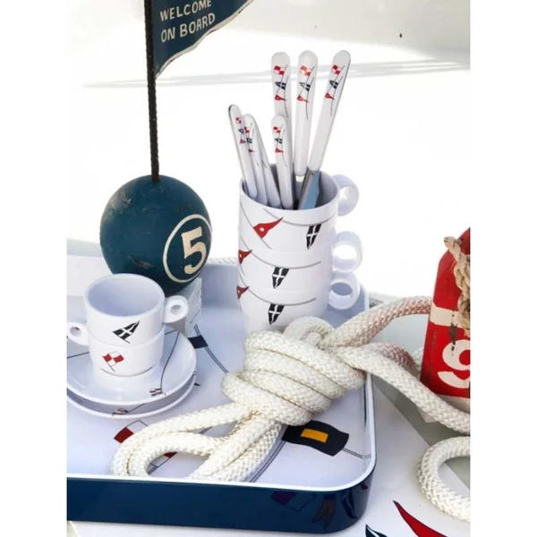 Cette vaisselle en mélamine incassable donnera une touche de lumière et de couleur à votre table grâce à sa décoration nautique légère, avec ses différents drapeaux de couleurs. Vous trouverez dans le set vaisselle REGATA tous les accessoires nautiques pour habiller votre table.