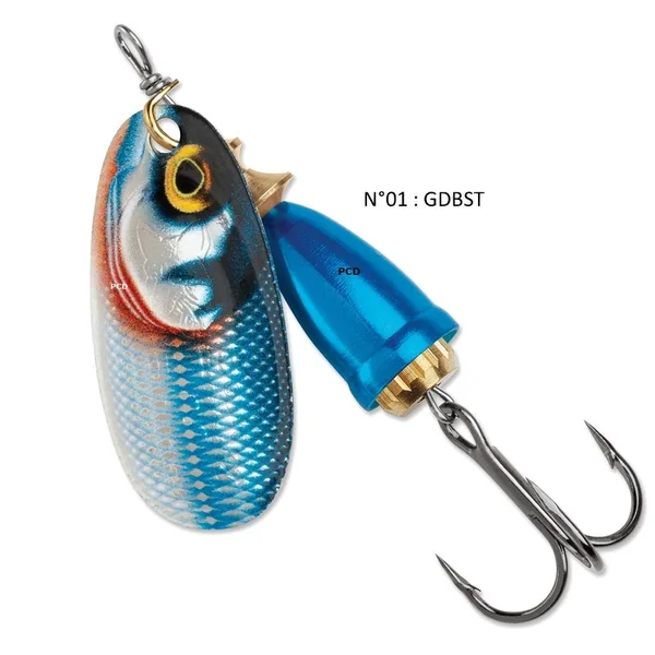 Son corps breveté en deux parties, qui élimine pratiquement les vrilles de ligne, est ce qui distingue véritablement les cuillers Blue Fox.