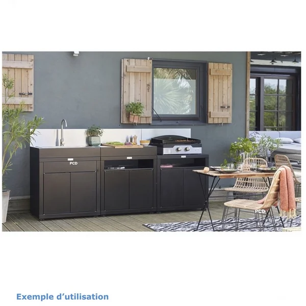 Cuisine Extérieure Noire Le Marquier 3 Éléments Avec Crédences.