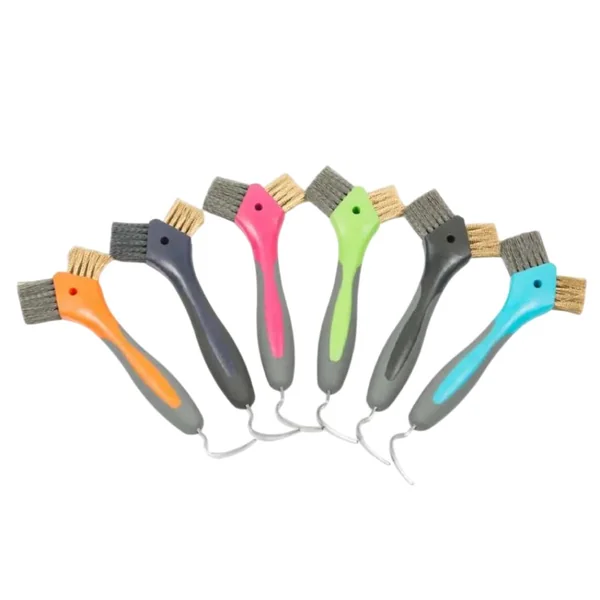 Cure-pieds triple fonctions, muni d’une brosse souple, d’une brosse dure et d’un cure-pieds. Permet de curer en profondeur les pieds du cheval.