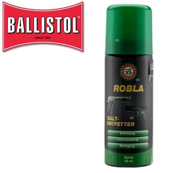 DEGRAISSEUR A FROID BALLISTOL ROBLA 50ML :Caractéristiques :-Supprime les huiles et graisse présentes sur l’arme pour un nettoyage complet ou avant une opération de bronzage.-Le dégraissant à froid Robla est indispensable pour le nettoyage parfait et complet des armes.-Huile et la graisse sont éliminées des surfaces métalliques sans laisser de traces.-Ce dégraissant à froid enlève également les résidus résinifiées (vieilles graisses).-Utile également pour le nettoyage et le pré-traitement des surfaces dans le domaine de la métallurgie ou dans les ateliers.-Contenance : 50Ml.*DANGER ! Aérosol extrêmement inflammable.Bien lire les précautions d’emploi avant usage. Normal 0 21 false false false FR X-NONE X-NONE /* Style Definitions */ table.MsoNormalTable {mso-style-name: »Tableau Normal »; mso-tstyle-rowband-size:0; mso-tstyle-colband-size:0; mso-style-noshow:yes; mso-style-priority:99; mso-style-parent: » »; mso-padding-alt:0cm 5.4pt 0cm 5.4pt; mso-para-margin-top:0cm; mso-para-margin-right:0cm; mso-para-margin-bottom:10.0pt; mso-para-margin-left:0cm; line-height:115%; mso-pagination:widow-orphan; font-size:11.0pt; font-family: »Calibri », »sans-serif »; mso-ascii-font-family:Calibri; mso-ascii-theme-font:minor-latin; mso-hansi-font-family:Calibri; mso-hansi-theme-font:minor-latin; mso-fareast-language:EN-US;}