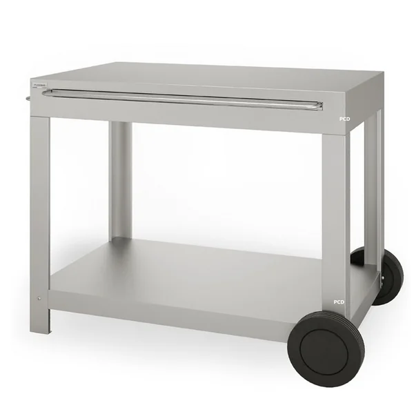 Découvrez cette desserte ingénieuse avec des tablettes coulissantes pour avoir un espace de travail modulable et conçu pour s’adapter aux planchas Le Marquier petits et grands modèles.