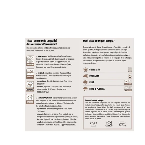 La gamme PERCUSSION offre aux chasseurs des vêtements très élégants.