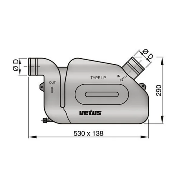 Capacité de 10,5 litres. Caractéristiques Echappement Vetus Waterlock LP – Ø 75 mm