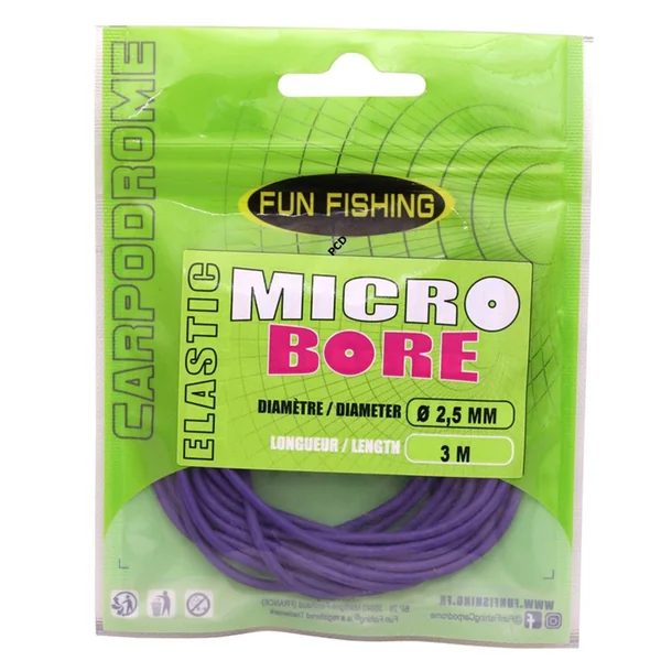 Développés spécialement pour les compétiteurs les plus exigeants, les élastiques Micro Bore de marque Fun Fishing, sont fabriqués par co-extrusion à partir d’élastomères Hi-Tech garantissant ainsi une longévité exceptionnelle.