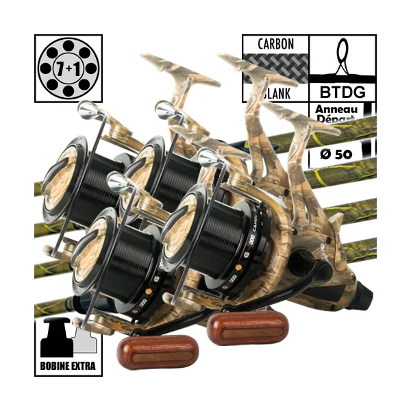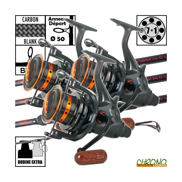 Ensemble Carp Design Start Fighter 12′ 3lbs DA60 (les 2)Canne Carp Design Start Fighter 12′ 3lbsDerrière son look sobre et soigné, la Start Fighter est une canne d’une extrême polyvalence qui saura combler les carpistes en quête de perfectionnement !Son blank noir mat fin souligné de ligatures noires avec liseré bleu, offre un action semi-parabolique très plaisante sur des poissons de toutes tailles.Dotée d’un porte moulinet Webo DPS, d’anneaux SIC TSG double pattes et d’une poignée abrégée conique avec revêtement en gaine caoutchoutée pour un « grip » optimal, la Start Fighter offre un niveau d’équipement impressionnant !Son blank réalisé en carbone Module Intermédiaire (IM) lui confère de bonnes capacités de lancer ainsi qu’une grande réserve de puissance pour faire face aux poissons les plus puissants !La Start Fighter est une canne passe-partout qui allie performance, esthétique et solidité, le tout à un incroyable rapport qualité/prix.
