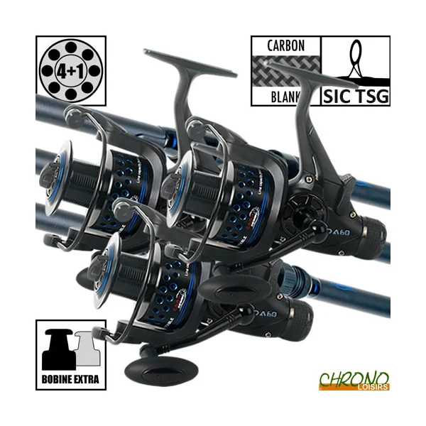 Ensemble Carp Design Start Fighter 13′ 3.5lbs DA60 (les 2)Canne Carp Design Start Fighter 13′ 3.5lbsDerrière son look sobre et soigné, la Start Fighter est une canne d’une extrême polyvalence qui saura combler les carpistes en quête de perfectionnement !Son blank noir mat fin souligné de ligatures noires avec liseré bleu, offre un action semi-parabolique très plaisante sur des poissons de toutes tailles. Dotée d’un porte moulinet Webo DPS, d’anneaux SIC TSG double pattes et d’une poignée abrégée conique avec revêtement en gaine caoutchoutée pour un « grip » optimal, la Start Fighter offre un niveau d’équipement impressionnant !Son blank réalisé en carbone Module Intermédiaire (IM) lui confère de bonnes capacités de lancer ainsi qu’une grande réserve de puissance pour faire face aux poissons les plus puissants !La Start Fighter est une canne passe-partout qui allie performance, esthétique et solidité, le tout à un incroyable rapport qualité/prix.
