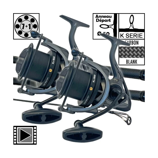 Les deux modèles sont équipés du moulinet Vertice Carp 5000 LD, léger et compact.