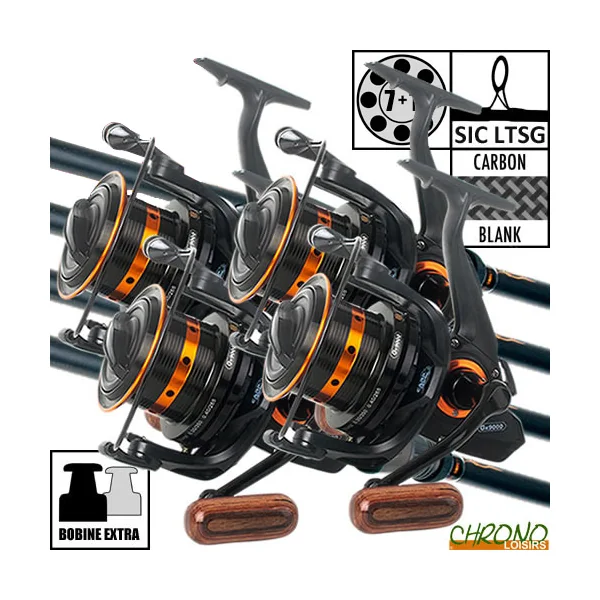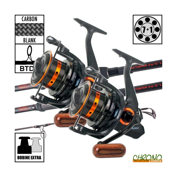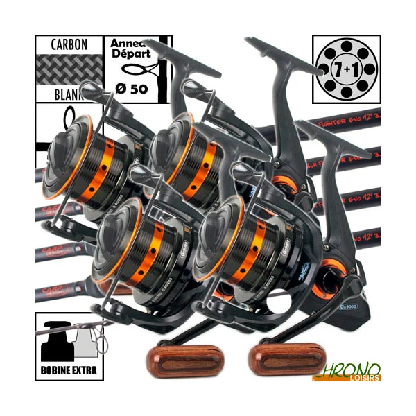 Canne D’ Carp en carbone, équipé d’un porte-moulinet tubulaire à vis à bague noire, d’anneaux oxyde d’aluminium et d’action semi-parabolique.