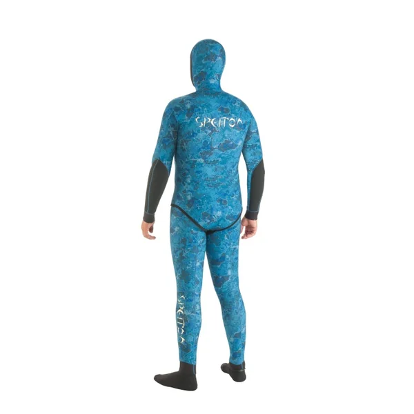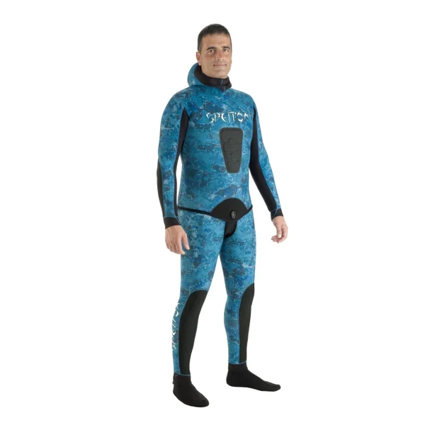 Ensemble Spetton Ocean Blue Camo 3mm Nouvelle combinaison deux pièces (veste + salopette), réalisée en néoprène super élastique intérieur refendu Cell Plus II et extérieur en jersey.