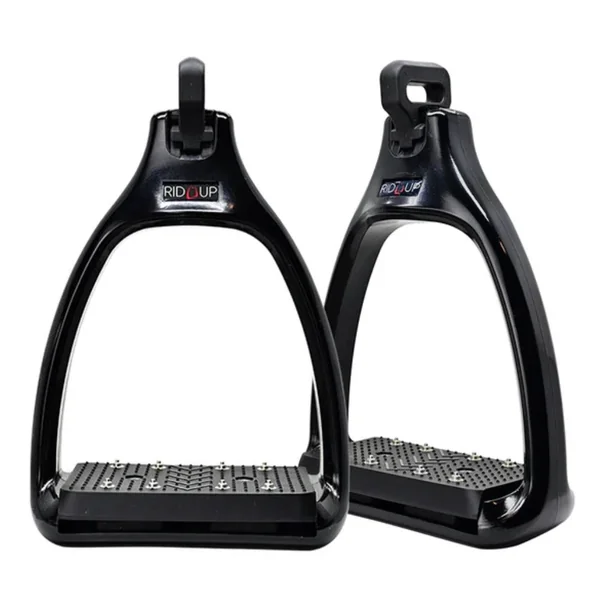 Les étriers Rid’Up Plus incarnent une nouvelle génération d’étriers techniques, alliant sécurité, confort et performance pour répondre aux exigences des cavaliers de tous niveaux. Dotés d’un système de déclenchement automatique breveté au niveau de la boucle, ces étriers se désolidarisent de l’étrivière en cas de chute, réduisant considérablement les risques de rester coincé et de se faire traîner par le cheval. Ce mécanisme innovant assure une libération rapide, tout en gardant l’étrier intact et réutilisable après l’incident. Grâce à un système de compensation par rotation de la boucle, les mouvements sont absorbés, offrant ainsi une stabilité renforcée et une fixité améliorée de la jambe. Le cavalier reste plus stable en selle, même lors des mouvements les plus techniques. Semelle en TPE haute performance sous le plancher rigide : absorption optimale des chocs, soulageant efficacement la plante du pied. Grip en acier inoxydable : les crampons assurent une adhérence parfaite, tout en permettant une liberté de mouvement du pied. Élastomère de haute qualité : pour un meilleur ressenti, une maîtrise fine des aides et un contact fluide avec la selle. Poids optimisé : seulement 440 g par étrier, pour ne pas alourdir l’ensemble et favoriser la performance. Les étriers Rid’Up Plus conviennent aussi bien à un usage sportif (CSO, dressage, complet) qu’à un usage loisir, pour tous les cavaliers soucieux de leur sécurité sans compromettre la technicité de leur matériel.