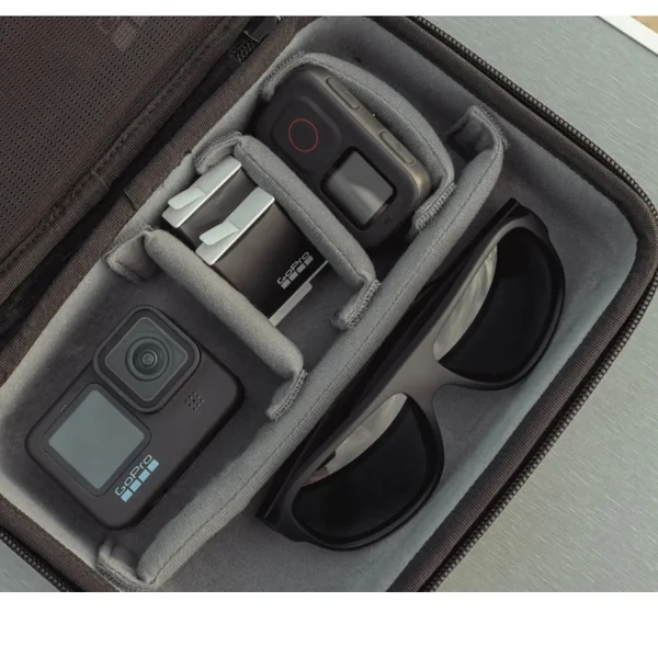 Cette étui est résistant au intempéries et possède une pochette en filet amovible pour piles, cartes SD et petits objets personnels Caractéristiques Étui pour camera GoPro semi-rigide