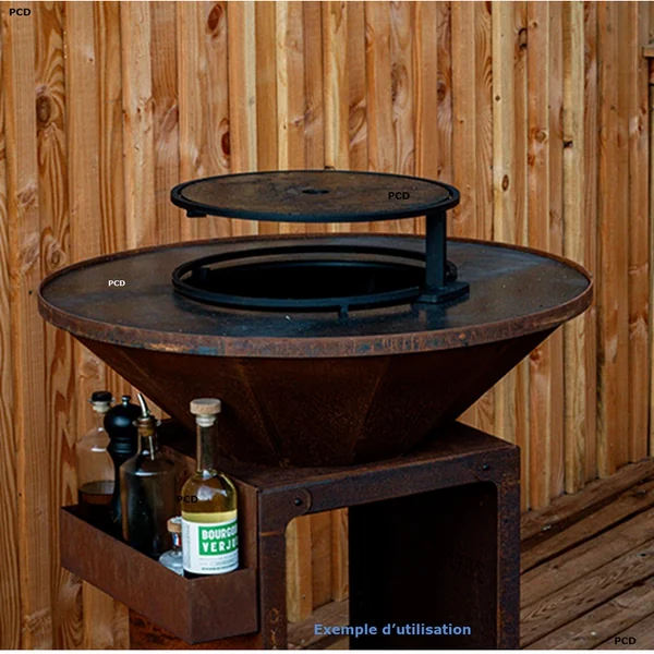Cet accessoire s’installe uniquement sur le mono pied (ou trépied) de la grille de cuisson, garantissant une stabilité optimale et une utilisation pratique.