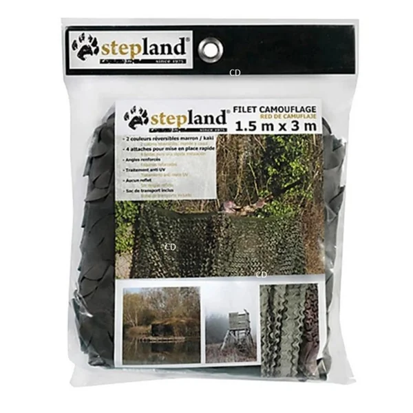 Filet de camouflage, de marque Stepland, spécialement étudié pour une mise en place rapide, un camouflage optimal et une durabilité renforcée.
