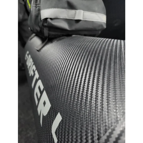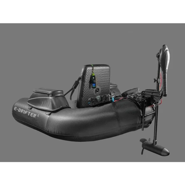Le E-Drifter L affiche un look carbone audacieux, donnant à ce bellyboat une apparence moderne et robuste. Grâce à un sol gonflable fixe avec un support et un trou pour le passage des câbles, le E-Drifter est prêt pour le Float Plus. Ce modèle est également conçu pour accueillir un support moteur, permettant de fixer un moteur électrique, transformant ainsi l’E-Drifter d’un simple bellyboat en un choix réfléchi pour les pêcheurs exigeants.