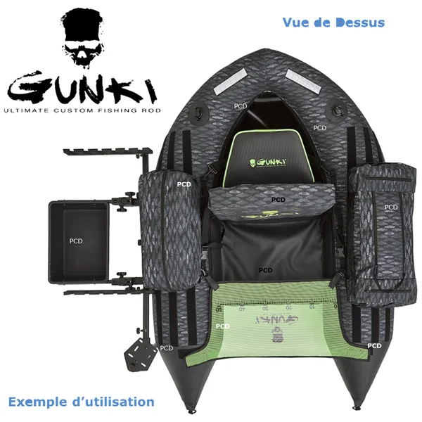 La forme en V hydroglisse de ce float tube de marque Gunki, son assise très confortable et sa grande flottabilité facilitent grandement les déplacements sur l’eau.