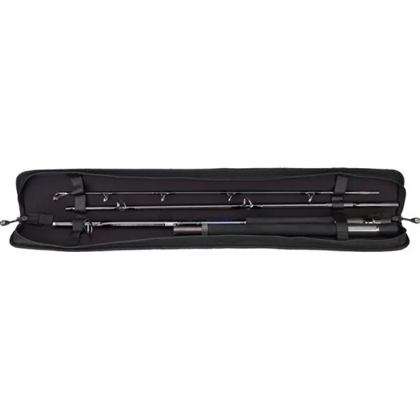 Équipé d’une sangle détachable, il est aisé de le transporter jusqu’au lieu de pêche. Des velcros facilitent la fixation et la séparation des éléments de cannes.