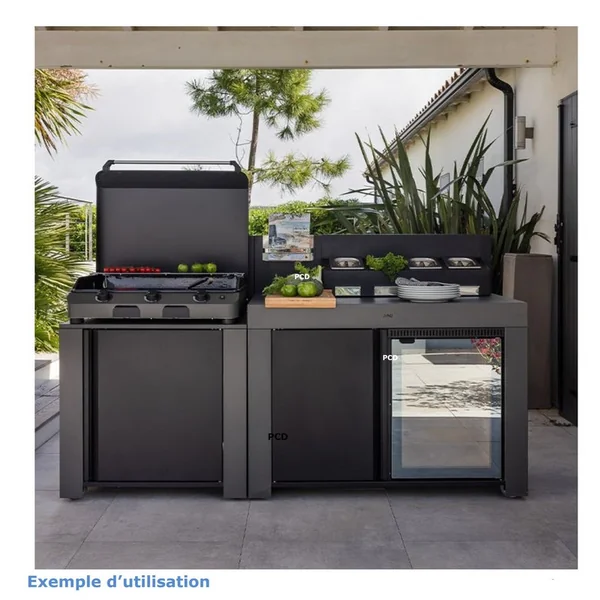 Il est compatible avec le meuble Félix, votre cuisine extérieur sera ainsi parfaitement équipée. La porte en verre réversible est idéale pour ce frigo Eno.