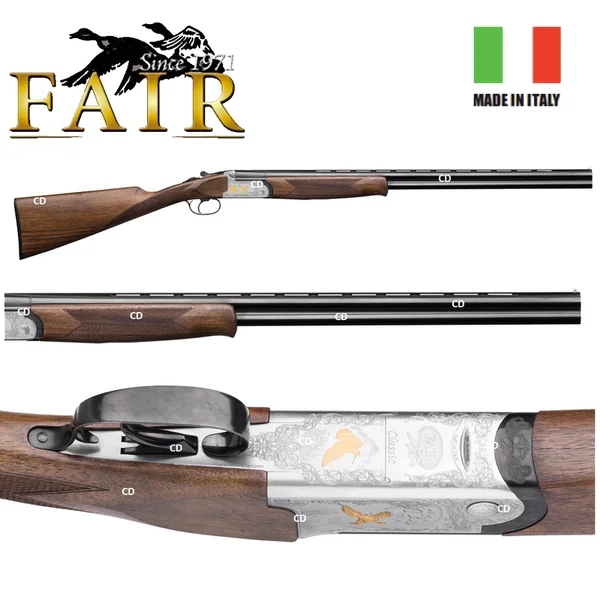 FUSIL SUPERPOSE FAIR CLASSIC ACIER DD 20/76 71CM :*Garantie 5 ans.-La gamme Classic Acier est constituée darmes sélectionnées pour leur solidité, leur fiabilité et leur polyvalence.-Bascule en acier monobloc haute résistance.-Double verrouillage bas.-Tourillons acier interchangeables.-Canons en acier à résistance élevée. (UM7)-Bascule couleur argent, avec gravure 3D.-Canons Eprouvés billes d’acier.*Caractéristiques Techniques :-Calibre 20.-Longueur des canons : 71cm.-Chambre : 76mm.-Double détente (DD). (Visuel de la monodétente) -Livré avec 5 chokes interchangeables.-Couleur de la bascule : Argent avec gravure 3D.-Bascule Acier.-Finition Bois Poncé Huilé.-Extracteurs.-Crosse anglaise.-Poids : 2Kg750 environ.*Prix de vente conseillé 2018 : 1430€.*ARME SOUMISE A LA LEGISLATION : Carte d’identité + Permis de chasse OU Licence de tir VALIDES OBLIGATOIRES.*AUCUNE LIVRAISON NE POURRA INTERVENIR SANS PIECES JUSTIFICATIVES.