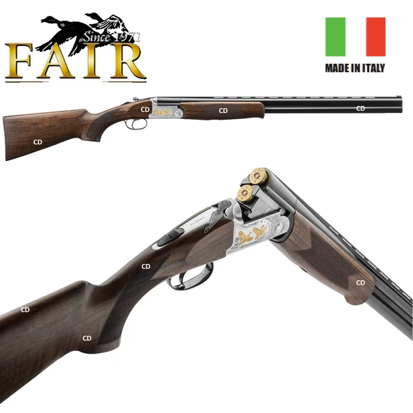FUSIL SUPERPOSE FAIR CLASSIC ACIER MDS 410/76 71CM :*Garantie 5 ans.-La gamme Classic Acier est constituée darmes sélectionnées pour leur solidité, leur fiabilité et leur polyvalence.-Bascule en acier monobloc haute résistance.-Double verrouillage bas.-Tourillons acier interchangeables.-Canons en acier à résistance élevée. (UM7)-Bascule couleur argent, avec gravure 3D.*Caractéristiques Techniques :-Calibre 410. (Visuel du calibre 20) -Longueur des canons : 71cm.-Chambre : 76mm.-Mono détente sélective (MDS).-Livré avec 5 chokes interchangeables.-Couleur de la bascule : Argent avec gravure 3D.-Bascule Acier.-Finition Bois Poncé Huilé.-Extracteurs.-Crosse pistolet. -Poids : 2Kg700 environ.*Prix de vente conseillé 2018 : 1535€.*ARME SOUMISE A LA LEGISLATION : Carte d’identité + Permis de chasse OU Licence de tir VALIDES OBLIGATOIRES.*AUCUNE LIVRAISON NE POURRA INTERVENIR SANS PIECES JUSTIFICATIVES.