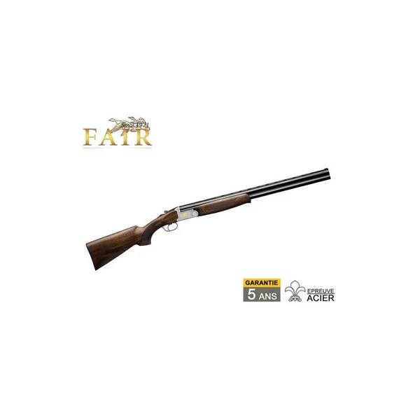FUSIL SUPERPOSE FAIR CLASSIC ERGAL MD 12/76 66CM :*Garantie 5 ans.-La gamme Classic Ergal allie tous les atouts très pisés de la ligne Classic à la légèreté dune bascule en Ergal 55 : maniable, solide, esthétique et confort optimum.-Bascule en Ergal 55 haute résistance.-Double verrouillage bas.-Tourillons acier interchangeables.-Canons en acier à résistance élevée. (UM7)-Bascule couleur argent, avec gravures 3D.-Canons éprouvés billes d’acier. *Caractéristiques Techniques :-Calibre 12.-Longueur des canons : 66cm.-Chambre : 76mm.-Finition Bois Poncé Huilé : Procédé spécifique F. A. I. R, à immersion des bois, avec 6 couches de finition, dont 2 avec TRUOIL.-Mono détente. (MD)-Couleur de la bascule : Argent, avec gravures 3D.-Bascule Ergal 55.-Extracteurs.-Crosse pistolet.-Livré avec chokes interchangeables.-Poids : 2Kg700 environ.*Prix de vente conseillé 2018 : 1530€.*ARME SOUMISE A LA LEGISLATION : Carte d’identité + Permis de chasse OU Licence de tir VALIDES OBLIGATOIRES.*AUCUNE LIVRAISON NE POURRA INTERVENIR SANS PIECES JUSTIFICATIVES.