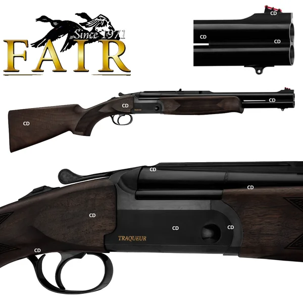 FUSIL SUPERPOSE FAIR PREMIER DC111T SLUG DD 12/76 46CM :*Garantie 5 ans.-Fusil superposé FAIR Premier, DC111 Battue, pourvus dextracteurs, en version Slug, spécial tir à balles.-Points luminescents et bande de battue avec hausse réglable pour améliorer les performances de précision et de vitesse de tir.-Double verrouillage bas.-Hausse de visée.-Bascule acier monobloc haute résistance.*Caractéristiques Techniques : -Calibre 12.-Chambre : 76mm.-Longueur du canon : 46cm.-Double détente. (Visuels de la version monodétente)-Chokes lisse et demi.-Couleur de la bascule : Noire.-Extracteurs.-Crosse pistolet.-Poids : 2Kg900.*Prix de vente conseillé 2018 : 1285€.*ARME SOUMISE A LA LEGISLATION : Carte d’identité + Permis de chasse OU Licence de tir VALIDES OBLIGATOIRES.*AUCUNE LIVRAISON NE POURRA INTERVENIR SANS PIECES JUSTIFICATIVES.