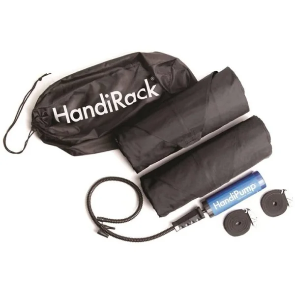 Pour sécuriser votre charge en toute sécurité, chaque ensemble de barres comporte 5 points d’ancrage en métal en forme d’anneau en D. Un ensemble de 2 x 3 mètres HandiStraps, une HandiPump et un sac de voyage avec cordon de serrage sont tous inclus. Le HandiRack est fabriqué à partir de nylon 400D solide et chaque vessie en PVC est rigoureusement testée pendant la production.