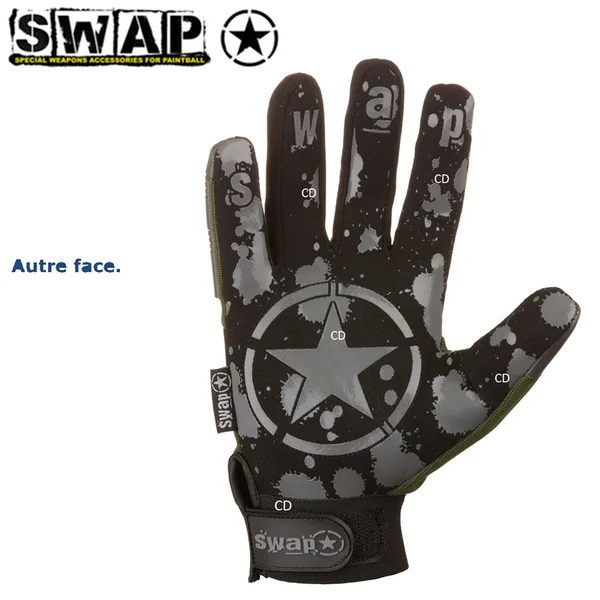 GANTS SWAP PROTECT OLIVE TAILLE S : Caractéristiques :-Gants pour la pratique du paintball.-Gants souples et ultra confortables.-Revêtement adhérant sur la paume pour une préhension optimale.-Résistance éprouvée pour la pratique d’une activité en extérieur.-Protection au niveau des doigts et sur le dessus de la main.-Couleur olive.*Disponible uniquement en taille S.