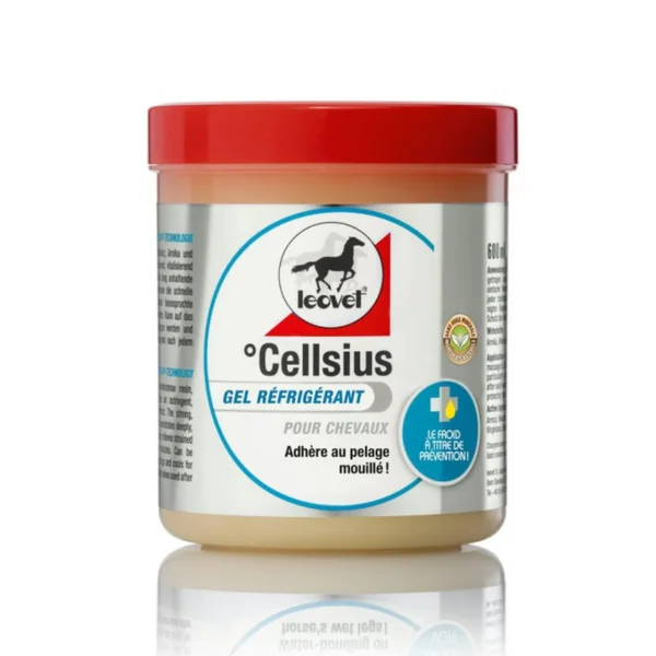 Le gel Celsius Cooling Gel de Leovet combine efficacité fraîcheur prolongée, ingrédients naturels tonifiants (hamamélis, encens, arnica, romarin, huiles essentielles) et technologie Waterdrop facilitant la récupération musculaire avec un usage simple. C’est un allié de choix après effort pour réduire surchauffe, gonflements et tensions. Conçu pour prolonger l’effet fraicheur obtenu après un rinçage des membres : grâce à la technologie Waterdrop, le gel se fixe sur les membres mouillés et maintient une sensation de froid durable, comme une manchette refroidissante Idéal pour les tendons, ligaments, muscles soumis à post‑effort (endurance, saut, cross), il stimule la récupération rapide en soulageant les zones surchauffées Maintien du froid : la Waterdrop Tech fixe l’eau, permettant une fraîcheur continue même après rinçage Relaxation musculaire : équilibre entre froid et ingrédients relaxants pour soulager raideurs et courbatures Récupération plus rapide : favorise la régénération des tendons et ligaments, idéal en post-effort Effet astringent & tonique : hamamélis et romarin renforcent les tissus, réduisent l’enflure Application pratique : gel facile à étaler, ne coule pas, tient sur peau humide comme une « seconde peau » . Conditions d’utilisation : Appliquer après un rinçage des membres (eau fraîche recommandée). Étaler généreusement sans masser intensément – le gel adhère naturellement Peut être appliqué sur peau sèche, mais l’effet froid est maximal sur peau mouillée . Usage exclusif pour chevaux ; éviter les zones irritées ou muqueuses. Se laver les mains après application.