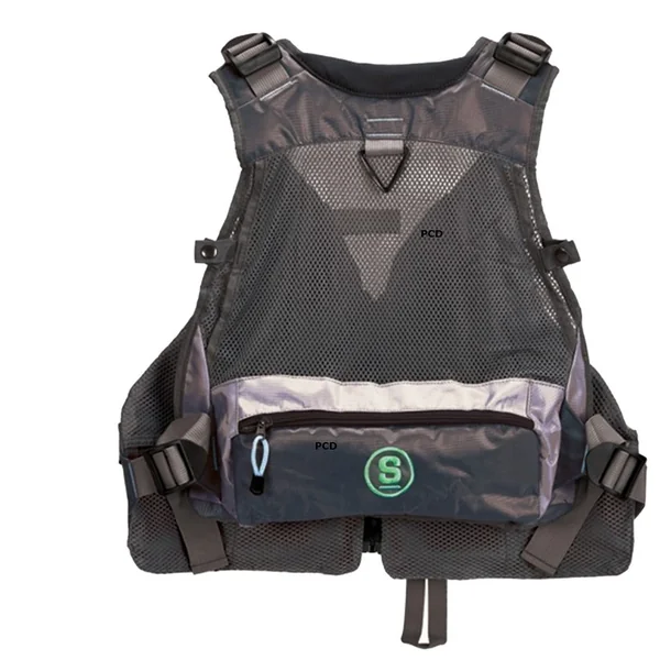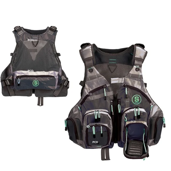 12 poches avant dont 4 coquées et 2 munies de présentoirs mouches ou nymphes.