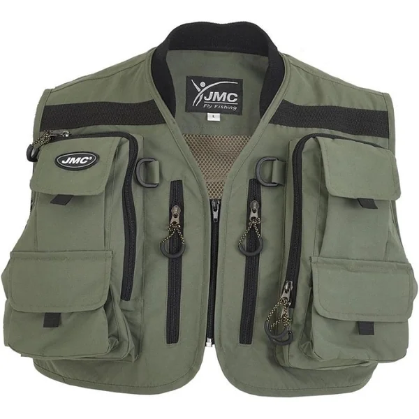 Gilet de pêche JMC Torrent Olive Réalisé en microfibre respirant, le Gilet Jmc Torrent comporte 8 poches permettant au pêcheur de disposer aisément de son matériel de pêche. Ce gilet allie légèreté, confort et technicité. Les deux grandes poches verticales à l’avant permettent de ranger des boîtes de grandes tailles, et apportent à ce gilet une certaine polyvalence, notamment pour la pêche en réservoir.