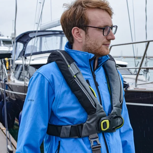 Ce Deckvest est un gilet de sauvetage intégré avec harnais certifié ISO 12402-3 (150 N).